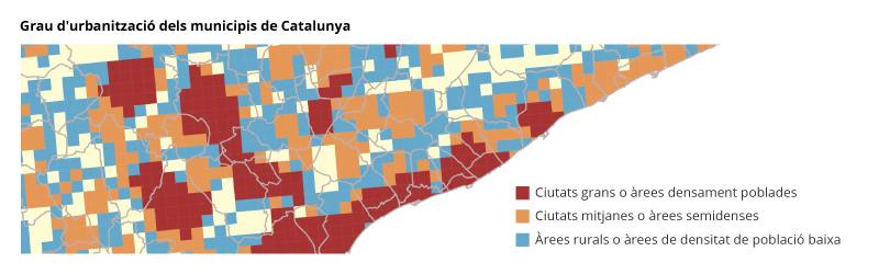 Por lo que respecta a los códigos territoriales, se ha participado en la elaboración de un indicador del grado de urbanización de los municipios de Cataluña, a partir del indicador DEGURBA de Eurostat. También se ha colaborado con el gobierno de los datos impulsado por la administración digital, aportando la información necesaria relativa a las nomenclaturas territoriales.