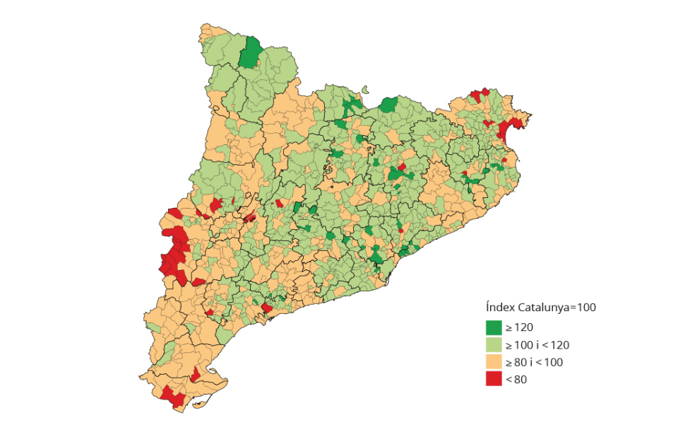 The IST is a relative index with a reference value for Catalonia of 100. It summarises various socioeconomic characteristics of the population residing in a territory and quantifies the differences between municipalities and within them.